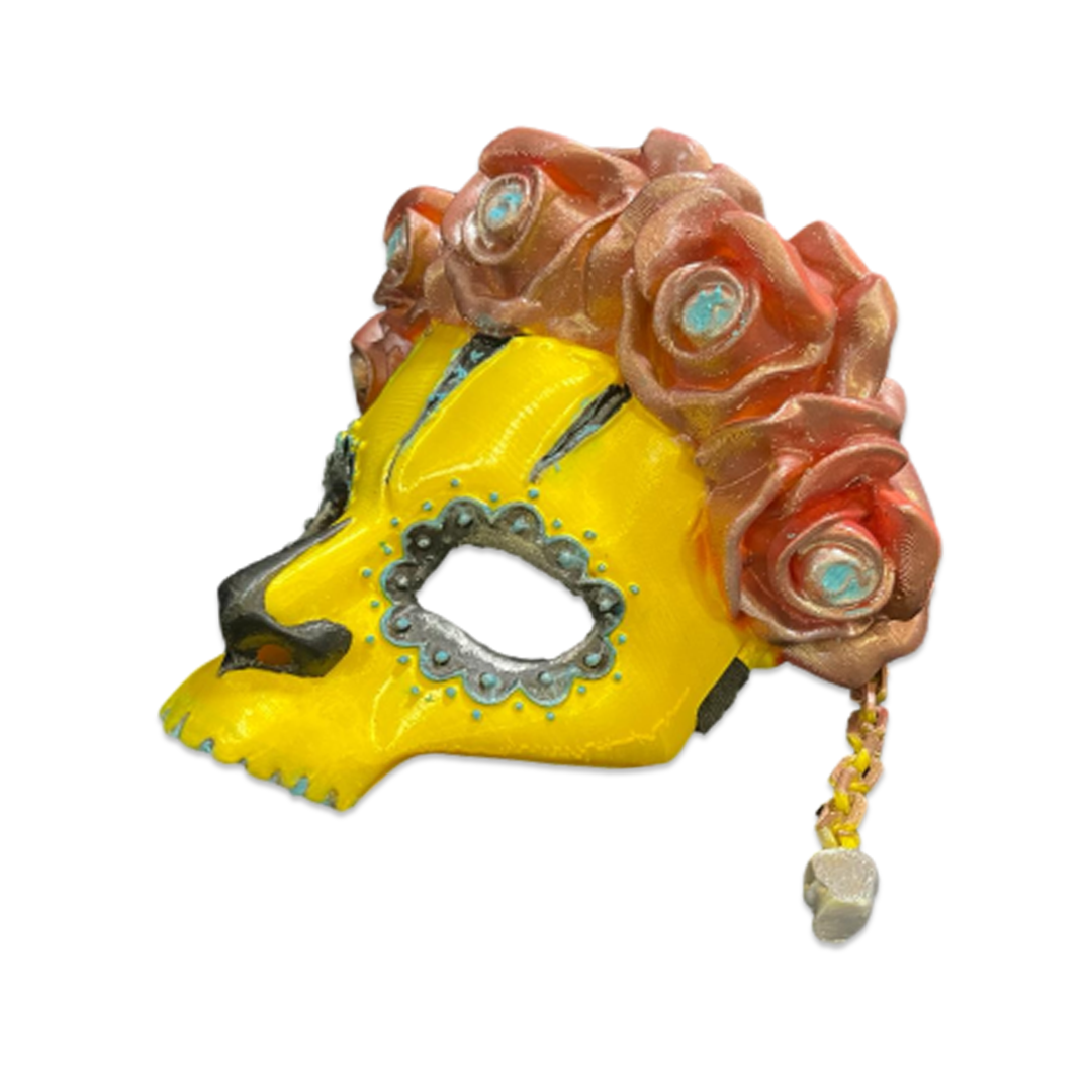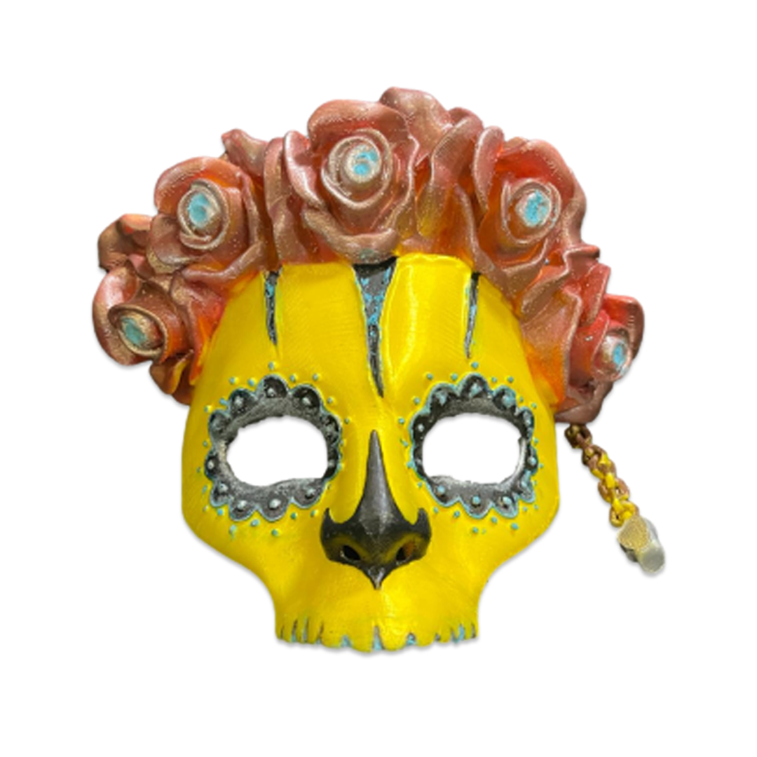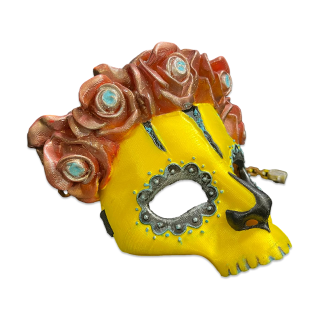 Blue and Yellow, Fistive Mask With Flower, Calaca (Cadılar Bayramı Maskesi) 3D Baskı: